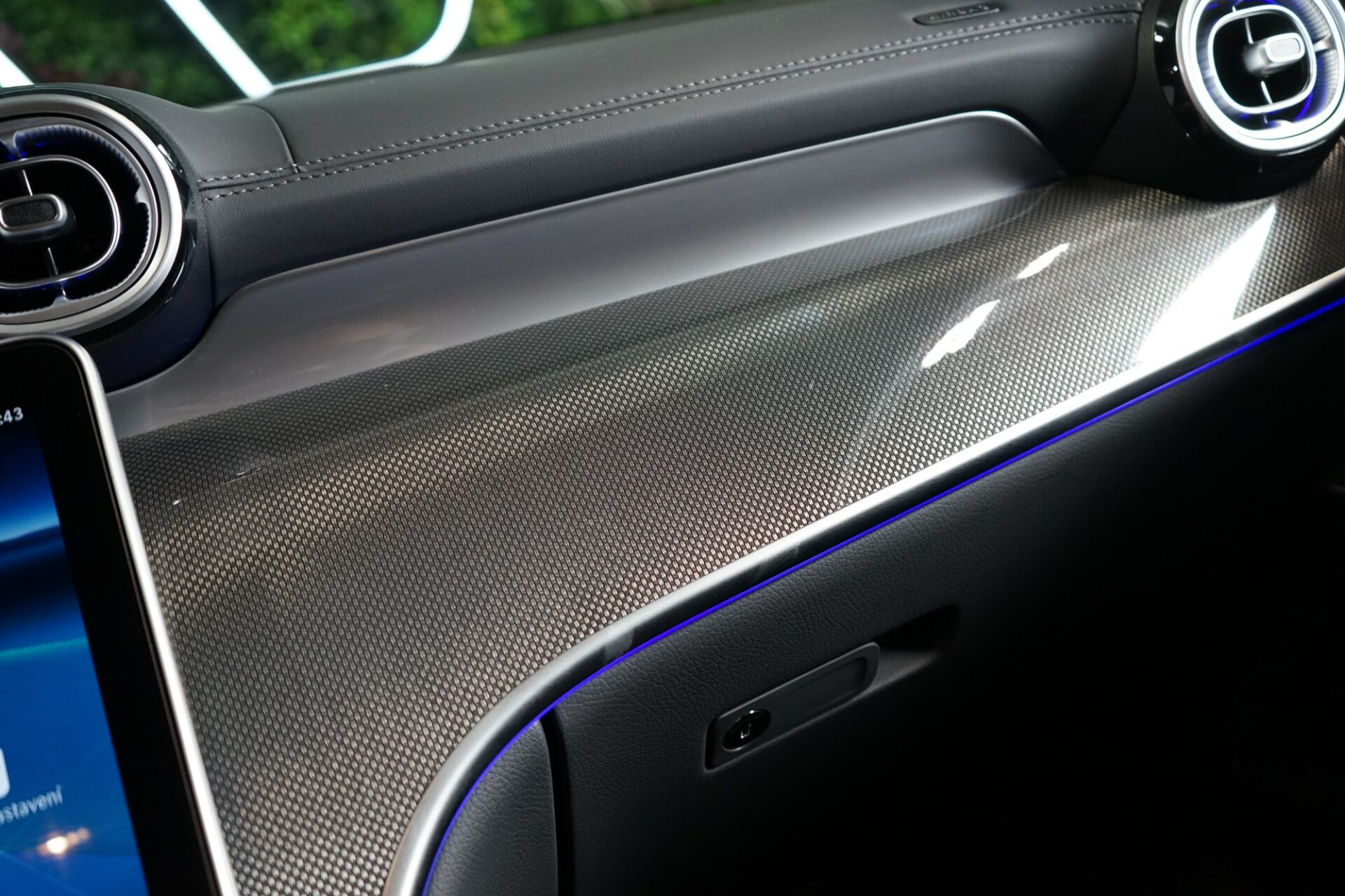 - Přístrojová deska a spodní hrana bočních oken čalouněné kůží (syntetická kůže nappa)